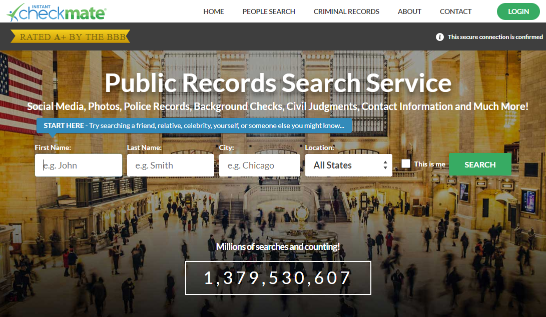 Instant Checkmate is a public records search, and background check service. Instant Checkmate and companies like it it are essentially public records repositories: with the help of other data brokers and technology, they are able to scrape personally identifying information on individuals living in the United States. All data independent within reports is already publicly available data: this means that all criminal tape information, basic information, nugget details, and all other data tin be found by anyone by ways other than using a people search site. Services like Instant Checkmate just make this data more easily accessible by putting it all in i identify and online. It's of import to annotation that not all publicly available information may not appear in online reports by Instant Checkmate and others when public records take not been digitized (this process depends on the state or jurisdiction). Similarly, the information in reports may not exist right: any information point may be inaccurate, missing, outdated, or associated to the wrong individual. The latter occurs most often when at that place is more than on person with the same name residing inside the same jurisdiction.